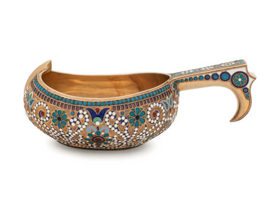 A Russian Silver-Gilt and Enameled Kovsh Retailed by Tiffany & Co.