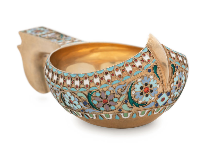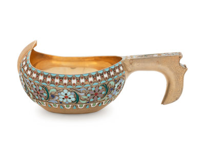 A Russian Silver-Gilt and Enameled Kovsh
