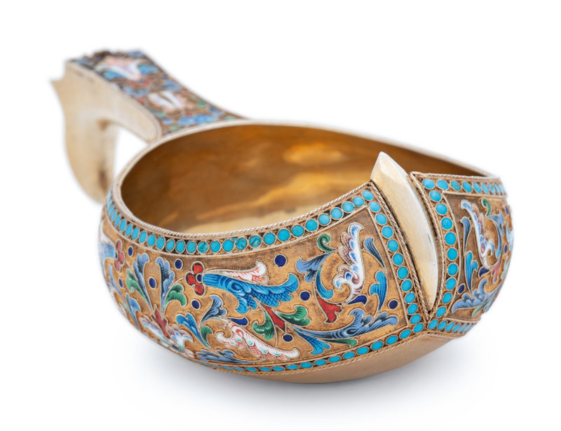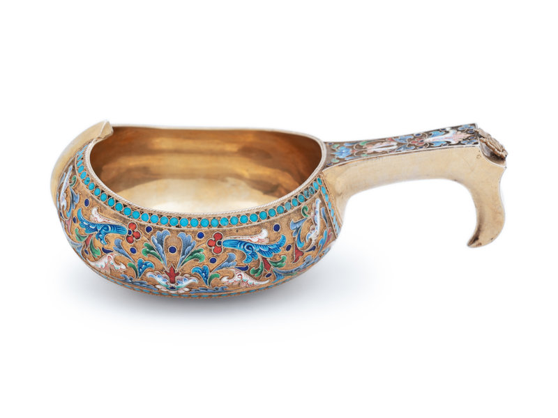 A Large Russian Silver-Gilt and Shaded Enamel Presentation Kovsh