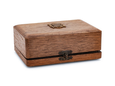 the handle with an applied crest of St. Petersburg, together with a conforming box.