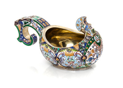 A Russian Silver and Enameled Kovsh