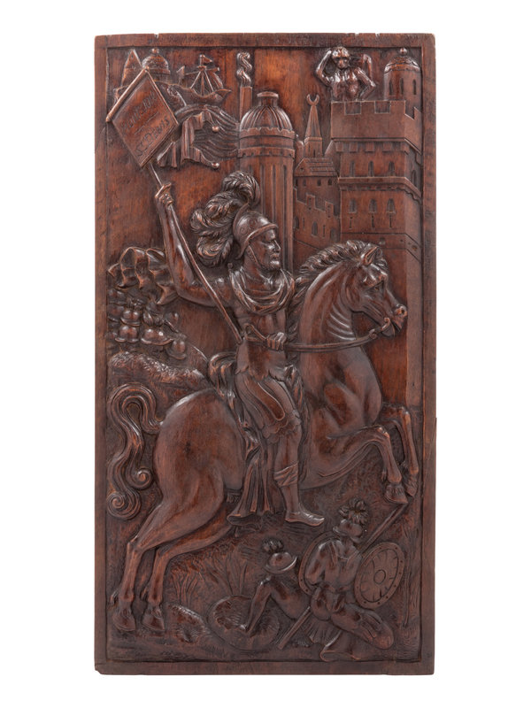 A French Relief-Carved Walnut Panel Depicting Louis VI of France
