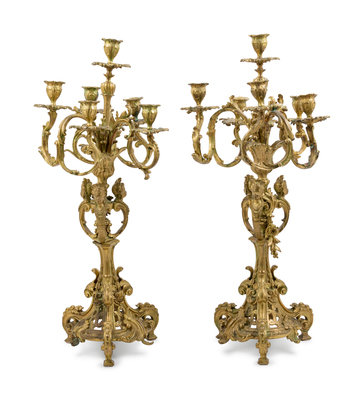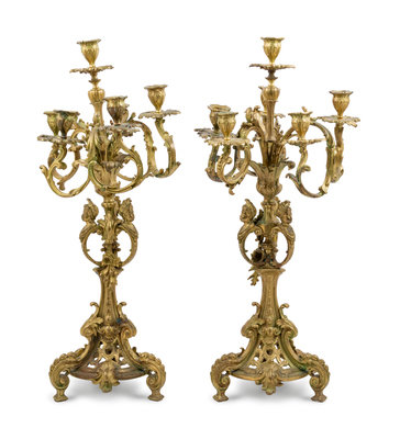 A Pair of Napoleon III Style Gilt Bronze Six-Light Candelabra
