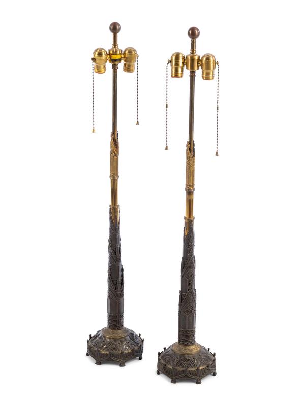 A Pair of Charles X Gothic Revival Patinated Metal Candlesticks