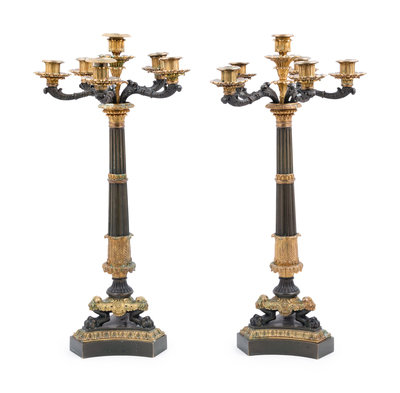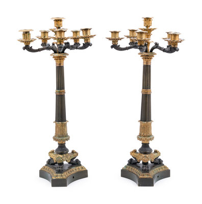A Pair of Louis Philippe Gilt Bronze Six-Light Candelabra