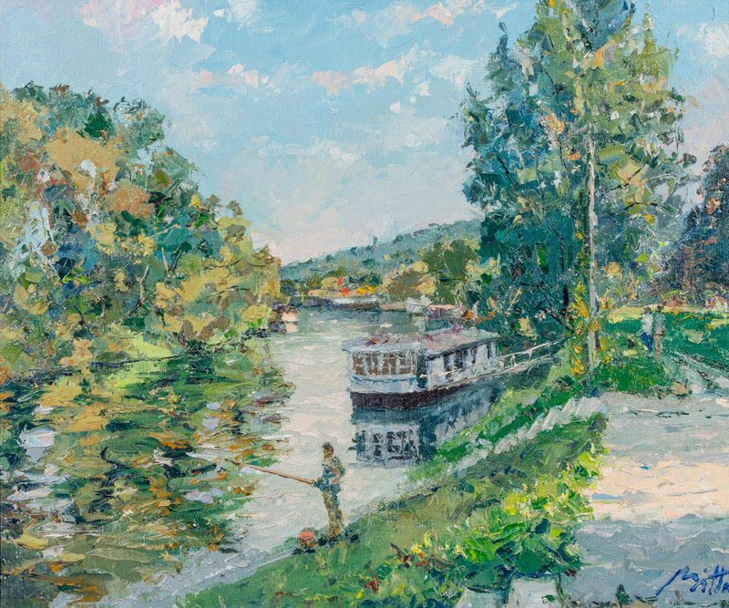 River with Boat and Fisherman