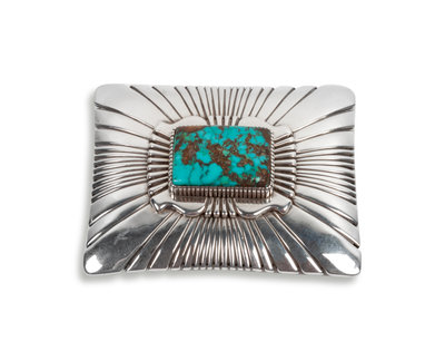 Sterling Silver and Pilot Mountain Turquoise Belt Buckle