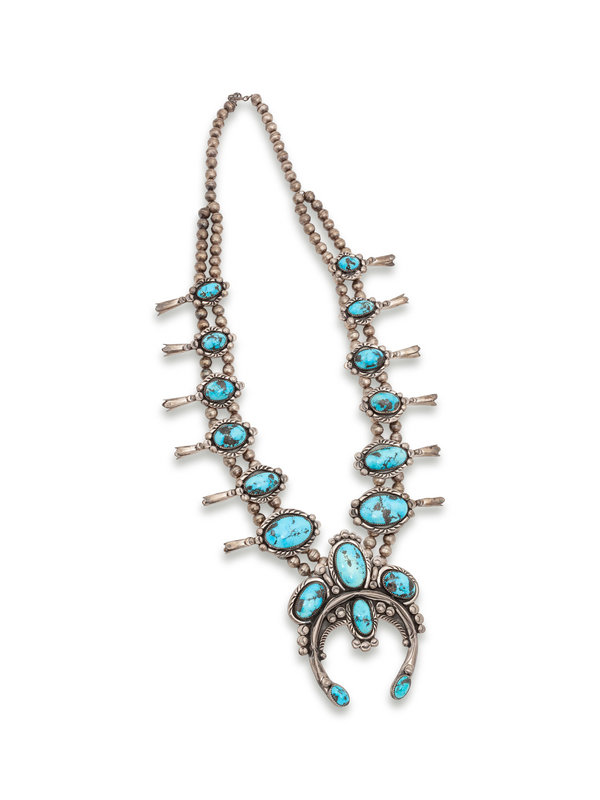 Navajo Silver and Turquoise Squash Blossom Necklace