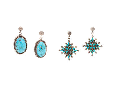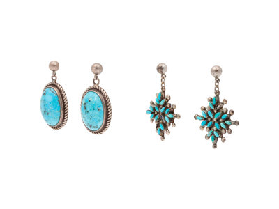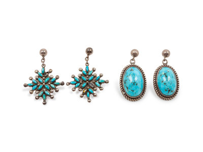 Navajo and Zuni Silver and Turquoise Earrings