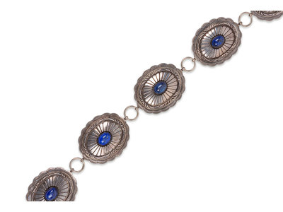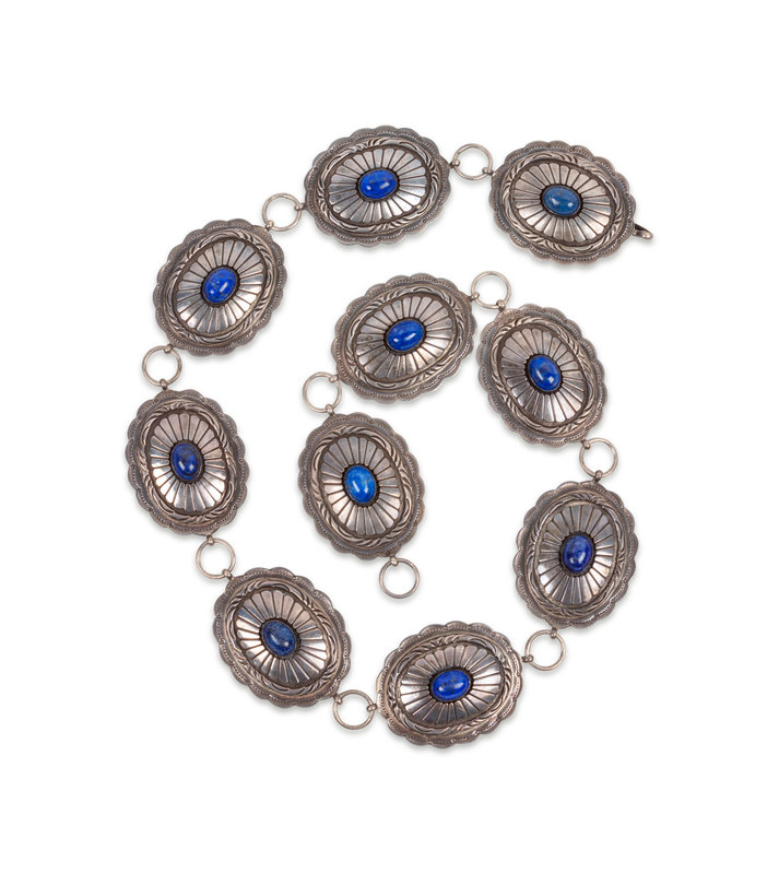 Navajo Sterling Silver and Lapis Link Concha Belt