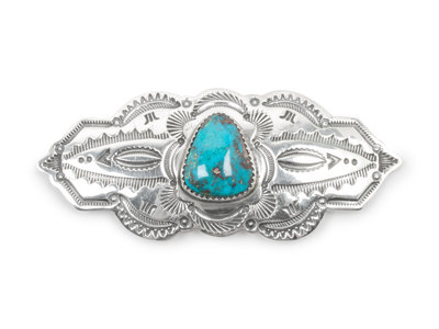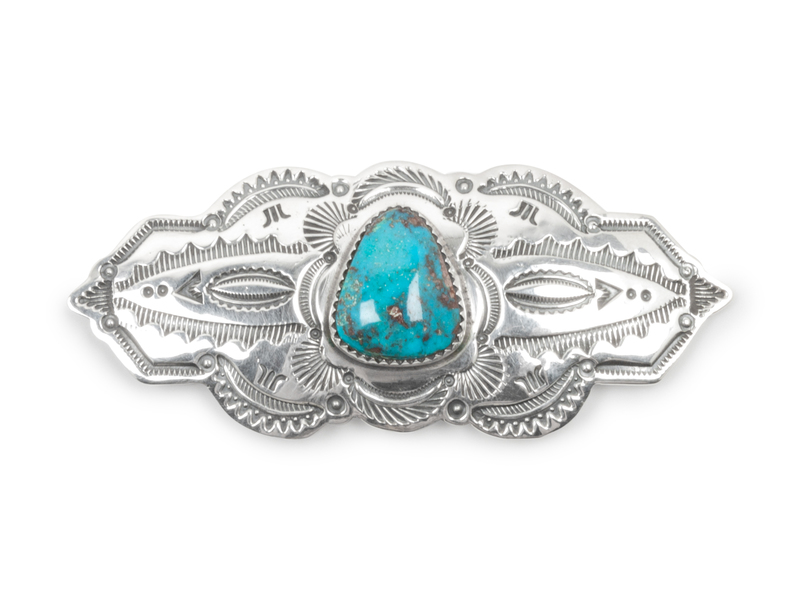 Stamped Sterling Silver and Turquoise Brooch