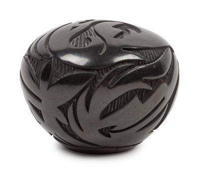 Carved Blackware Seed Jar with Avanyu, 1988, signed and dated (base)