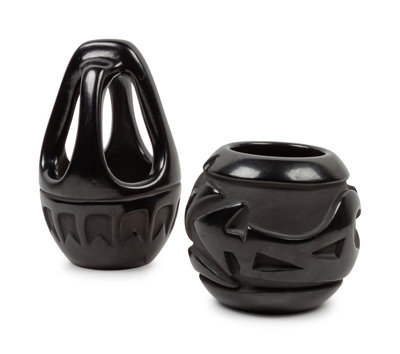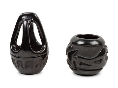 lot of 2, includes a bowl by Madeline Naranjo (b. 1916) and a basket by Florence Chavarria Browning (b. 1931)