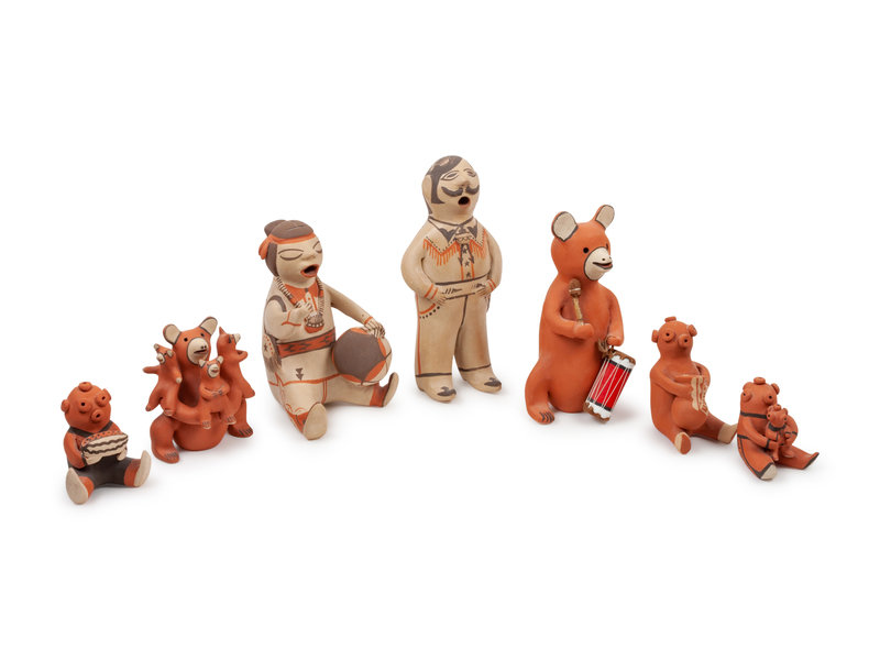three by Dorothy Trujillo (Laguna, 1932-1999), two by O. Trujillo, one by Almal Concha (Jemez, 20th century)