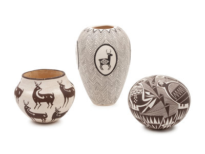 lot of 3, with heartline deer and mimbres imagery; artists include Rachel Concho, Grace Chino, and N. Chino