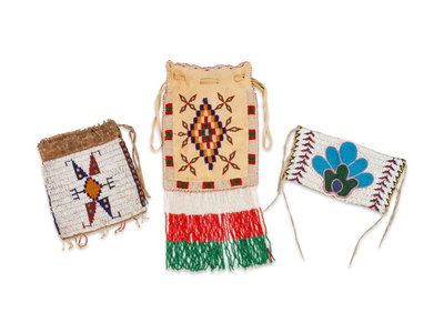 group of 3, includes an Apache bag, a Sioux pouch, and a Plains armband, largest 10 x 7 inches