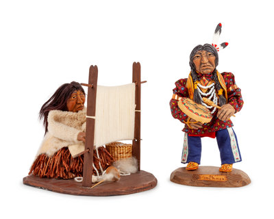 Ol' Drummer height 12 1/2; Weaver height 9 1/2 x width 10 inches