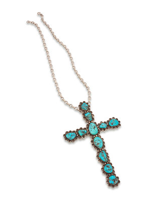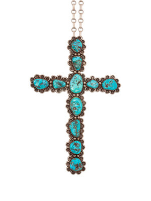 Large Silver and Turquoise Cross Pendant, with Silver Chain