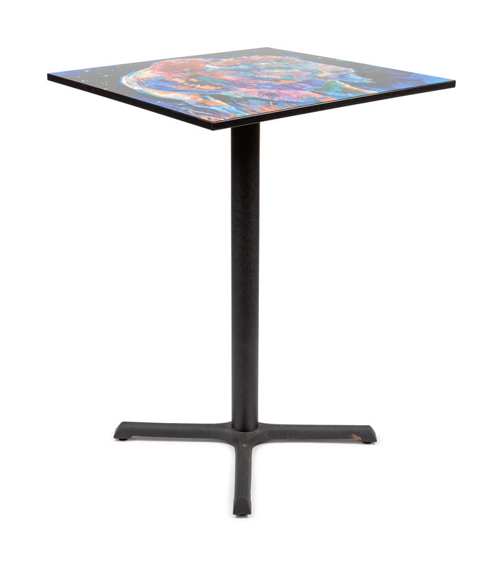 Table, Starry, Starry Night, acrylic and metal, signed Carol Hagan (tabletop, lower left)