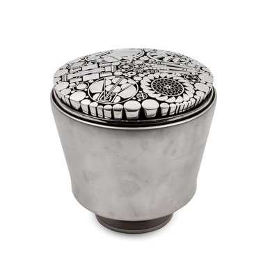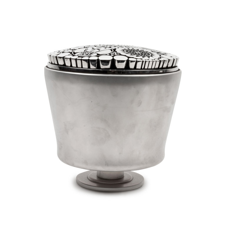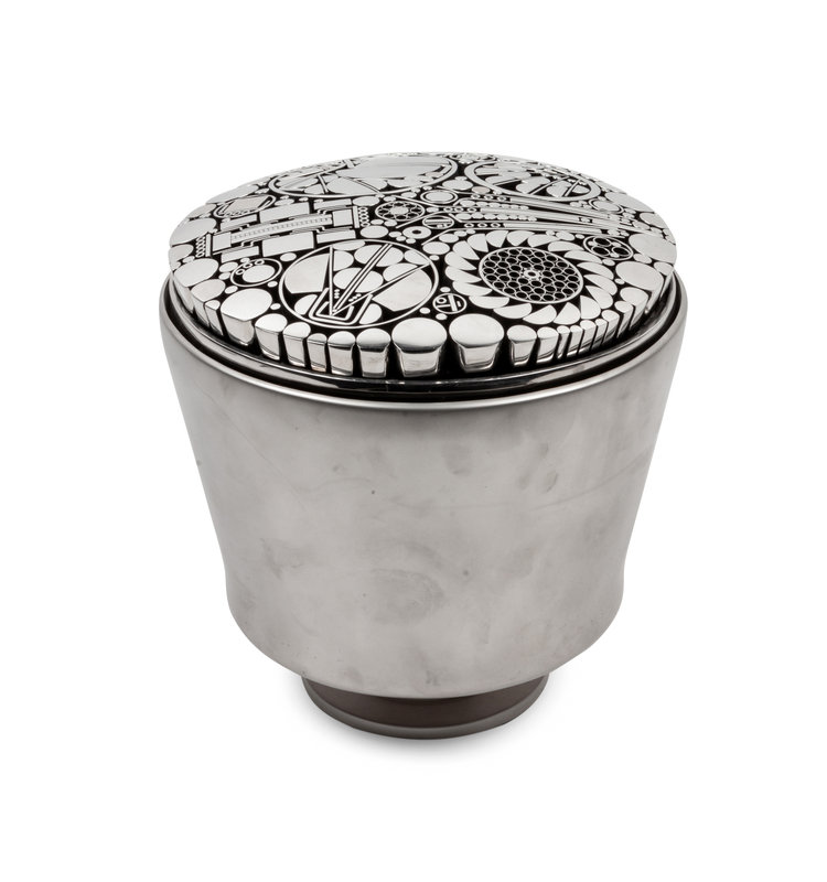 Chrome and Glass Floral Top Cylinder, 1998, signed Regier and dated