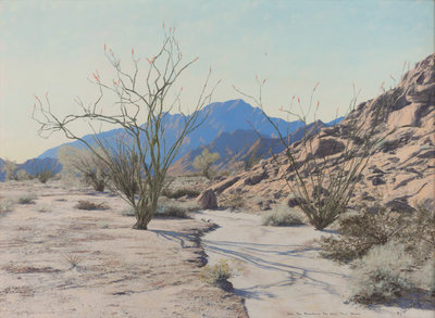 Group of Two Paintings, Into the Mountains the White Trail Winds and In the Path of the Storm, oil on photographic board, each signed Stephen H. Willard (lower right) and titled (lower edge)