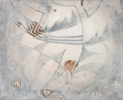 Ah-Na-Zah-Ic “Phantasmagoria” #96-0, 1968, mixed media on canvas, signed R.C. Gorman and dated (lower right) and signed, titled and dated (verso)