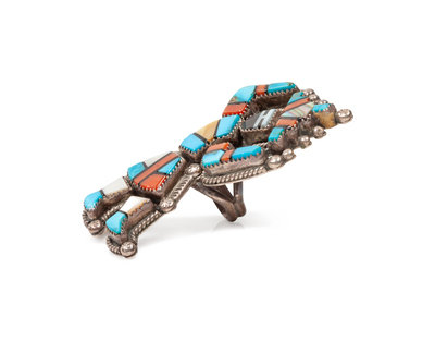 Zuni Silver and Mosaic Inlay Rainbow Man Ring