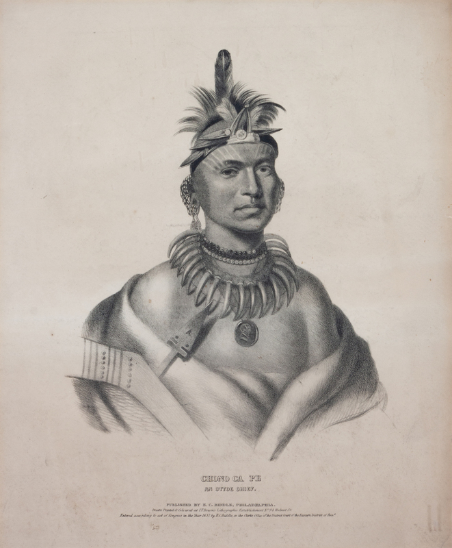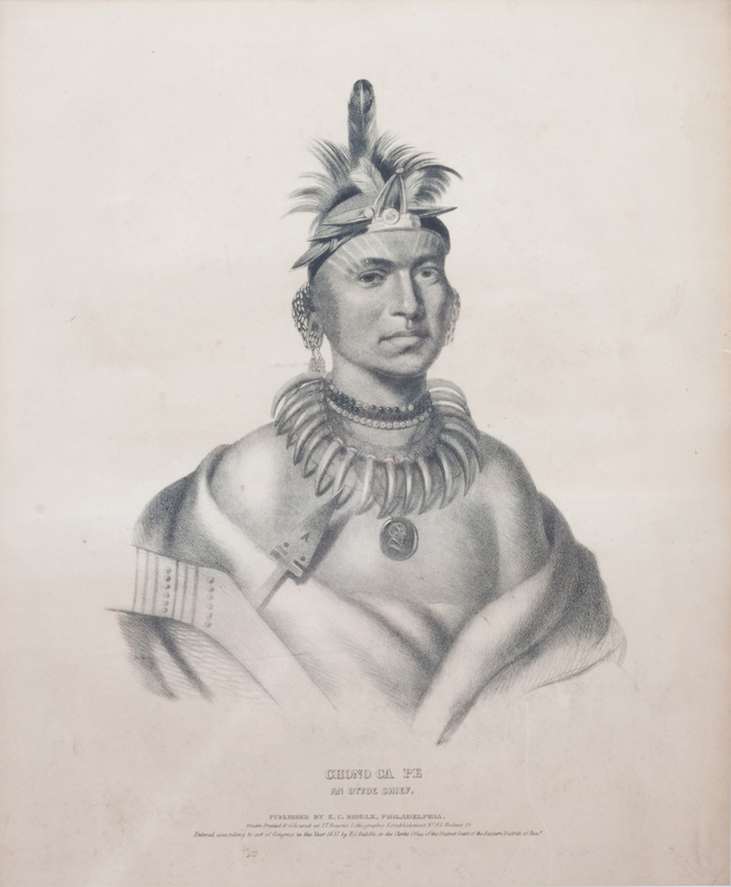 Lithograph from The History of the Indian Tribes of North America, titled Chono Ca Pe, An Ottoe Chief