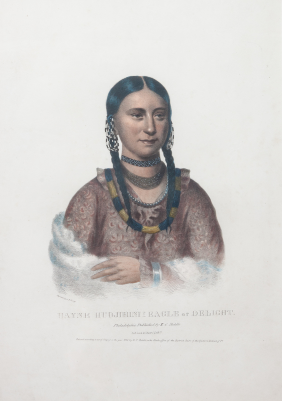 Hand colored lithograph from The History of the Indian Tribes of North America, titled Hayne-Hudjihini, The Eagle of Delight