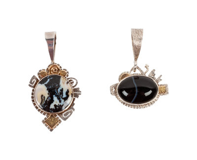Sterling Silver and Agate Pendants, with 14k Gold Accents