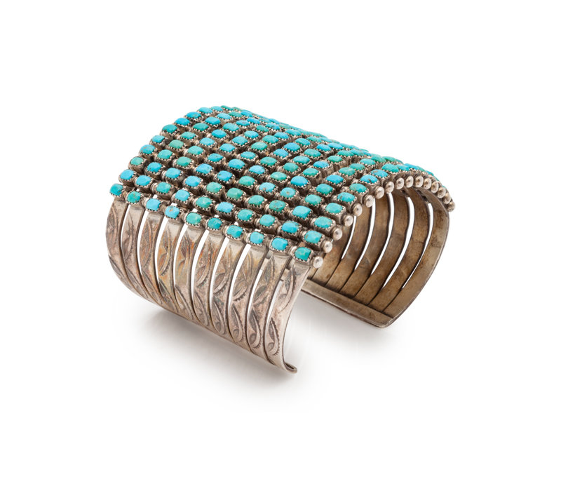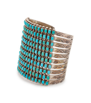 Zuni Silver and Petit Point Turquoise Cuff Bracelet