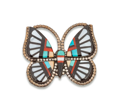 Zuni Silver and Mosaic Inlay Butterfly Brooch / Pendant