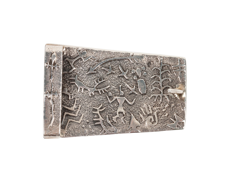 Sterling Silver Tufa Cast Belt Buckle, with Turquoise, Coral, and Lapis Channel Inlay