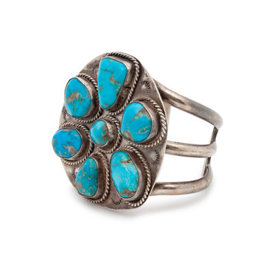 Navajo Silver and Turquoise Cluster Cuff Bracelet