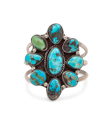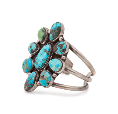 Navajo Silver and Turquoise Cluster Cuff Bracelet