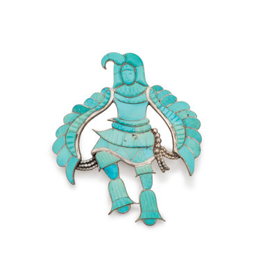 Eagle Dancer Slide / Brooch, with Channel Inlaid Carved Turquoise