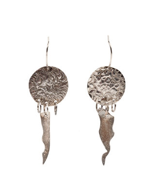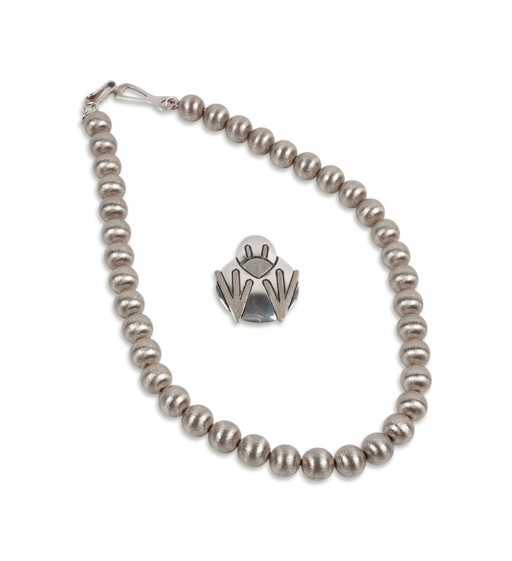 lot of 3, includes necklace length 17 inches; PLUS a silver Navajo bird pin; marked LS Sterling, length 1 1/2 inches; AND a pair of sterling silver earrings by Kathy Whitman, Elk Woman (Mandan, b. 1952), signed and dated Elk Woman '07, length 2 3/4 inches; combined weight 55.3 dwt.