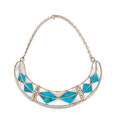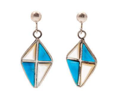 Zuni Silver Necklace and Earring Set, with Turquoise and Shell Channel Inlay