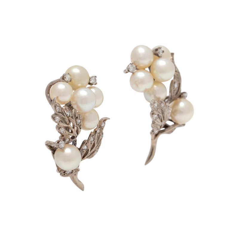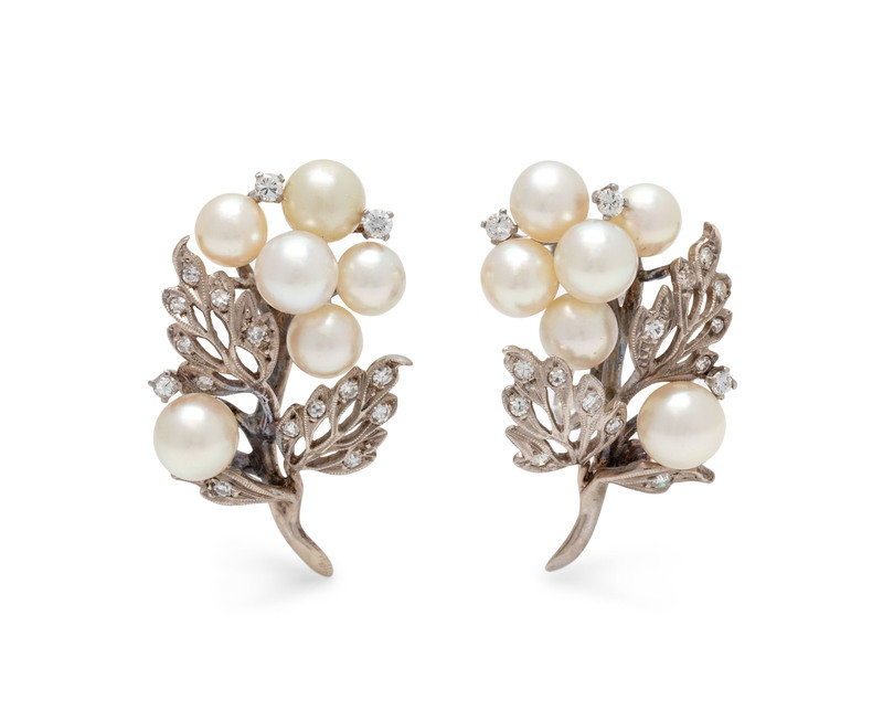 CULTURED PEARL AND DIAMOND EARCLIPS