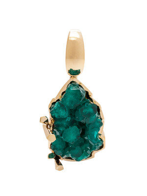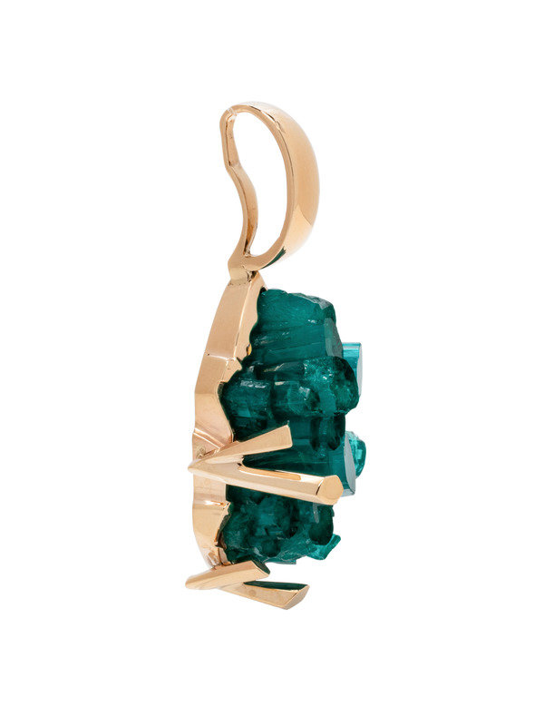 Containing rough synthetic emerald crystals. Mounted in yellow gold.