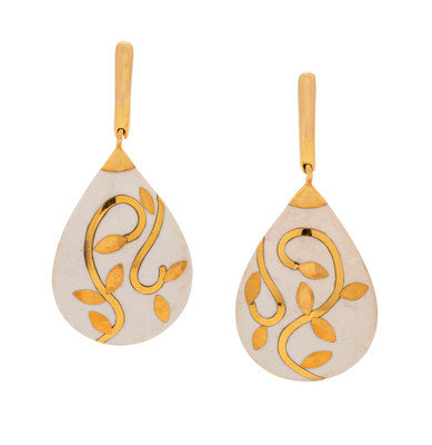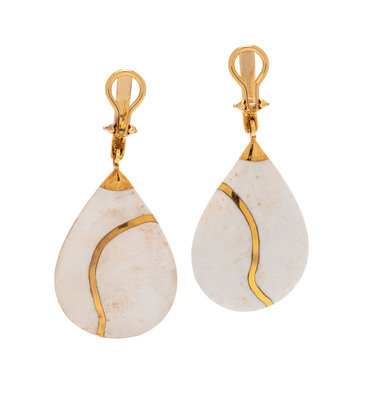SYDNEY GARBER, YELLOW GOLD AND WHITE HARDSTONE EARCLIPS