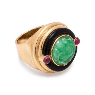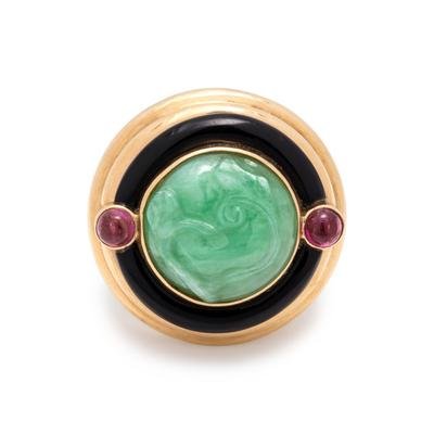 JADE, ONYX AND PINK TOURMALINE RING