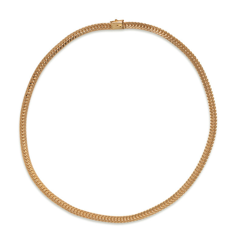Consisting of herringbone link chain measuring approximately 4.60 mm wide.