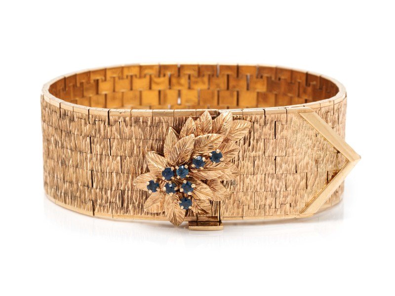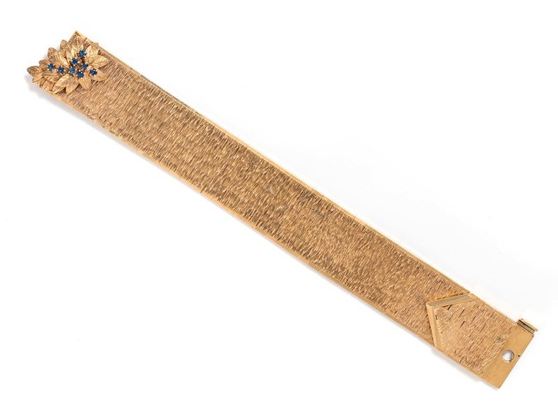 YELLOW GOLD AND SAPPHIRE BUCKLE MOTIF BRACELET
