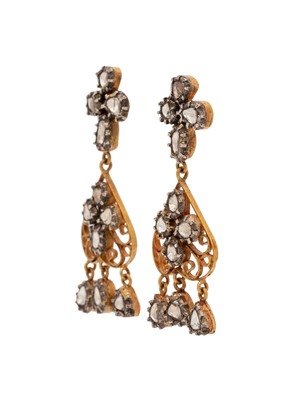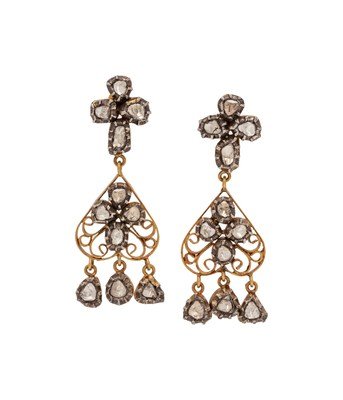 Containing 11 polki cut diamonds with silver bezels surmounted to gold openwork designs.