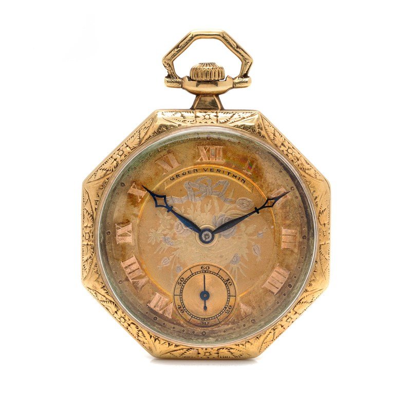 GRUEN, 14K YELLOW GOLD 'VERITHIN' OPEN FACE POCKET WATCH