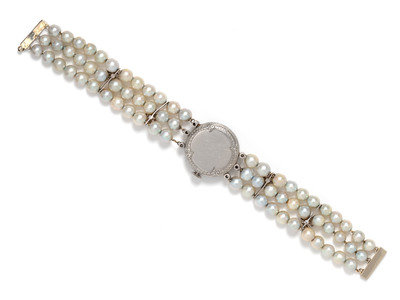 ANTIQUE, PLATINUM, DIAMOND AND CULTURED PEARL WRISTWATCH