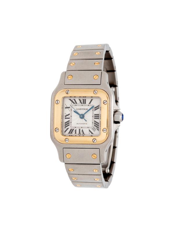 CARTIER, STAINLESS STEEL AND 18K YELLOW GOLD REF. 2423 'SANTOS' WRISTWATCH