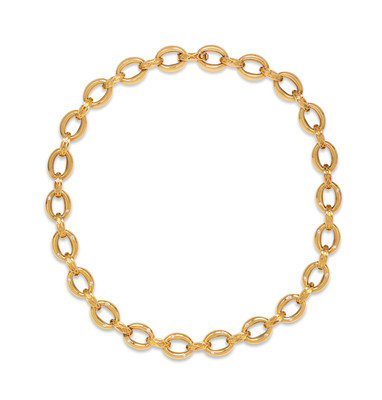 Consisting of an oval link necklace containing 24 round brilliant cut diamonds weighing approximately 0.25 carat total.