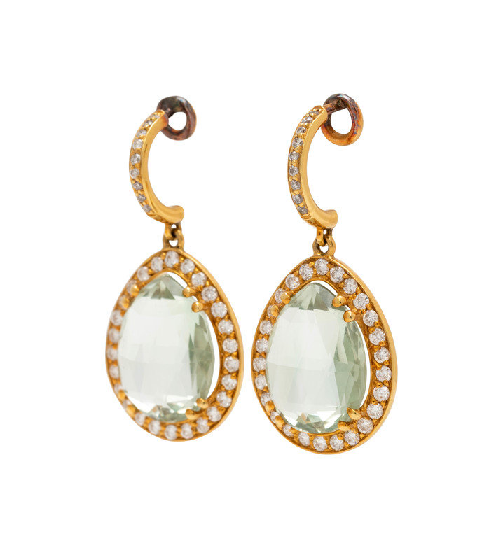 GREEN QUARTZ AND DIAMOND EARCLIPS